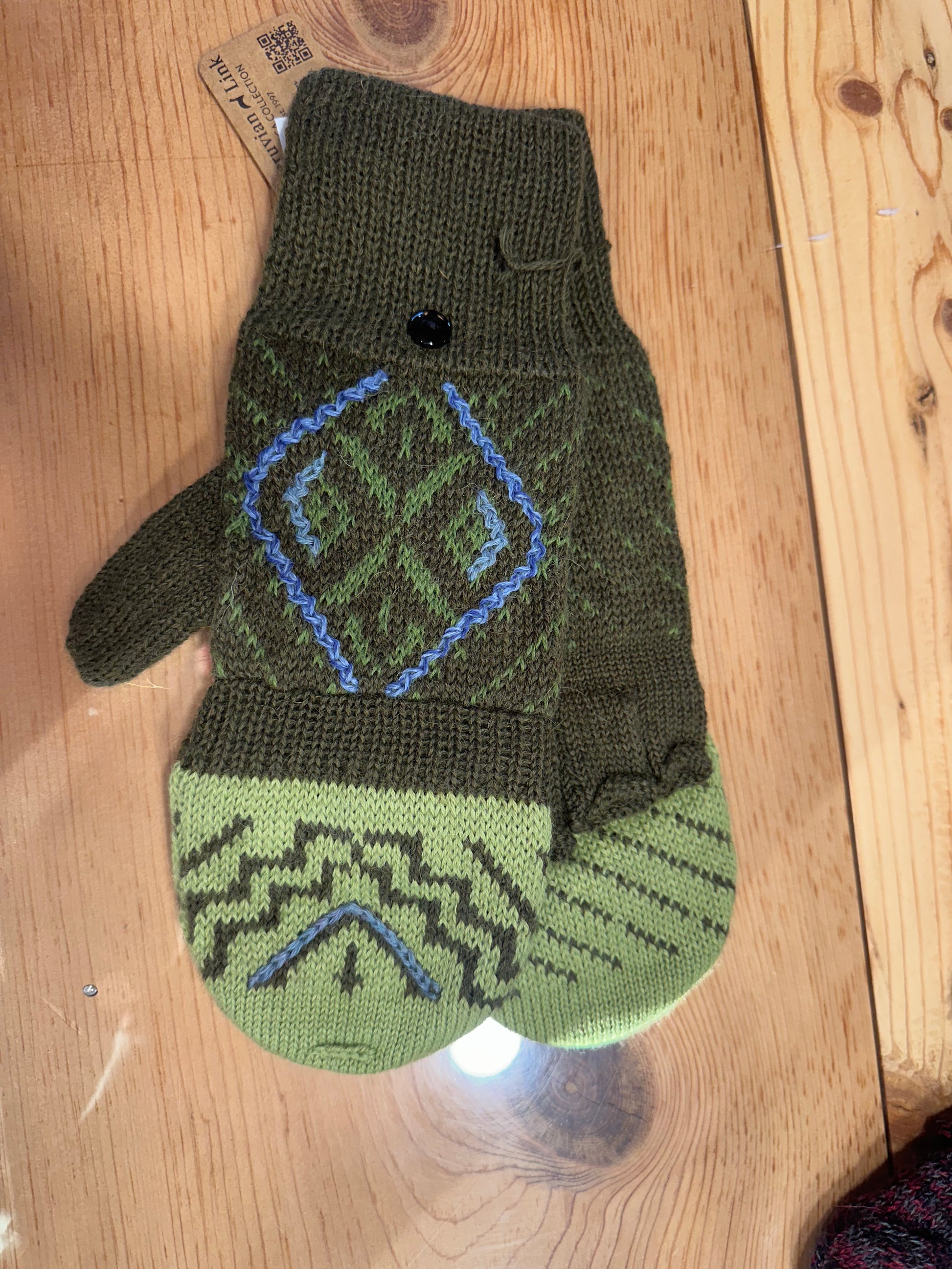 Beautiful felt-lined glitten to keep your hands very warm but free up your fingers when needed!